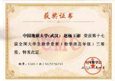 数学与应用数学专业郑诗涵同学荣获数学类高年级组一等奖,赵杨玉彬同学荣获数学类高年级组三等奖,机械与电子信息成人网站