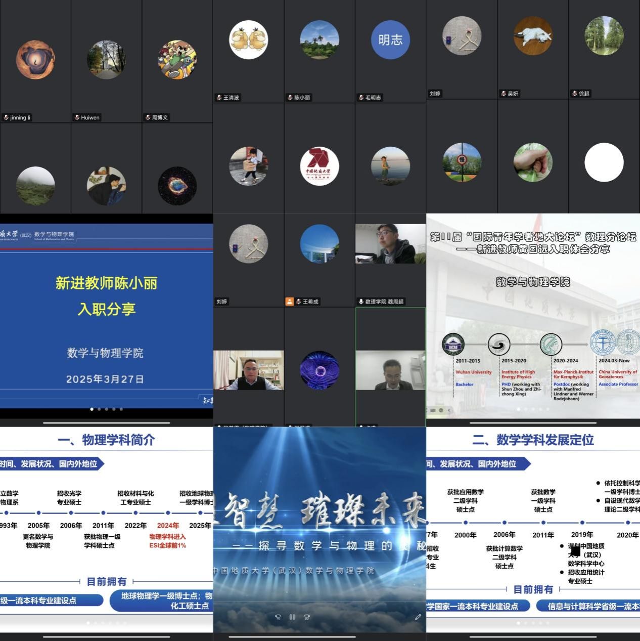 3月27日晚,第11届国际青年学者地大论坛数理分论坛在线上顺利举行。院领导班子成员、各系部中心负责人、海内外青年学者、院青年教师代表等30余人参加论坛。论坛由副院长卢成主持。