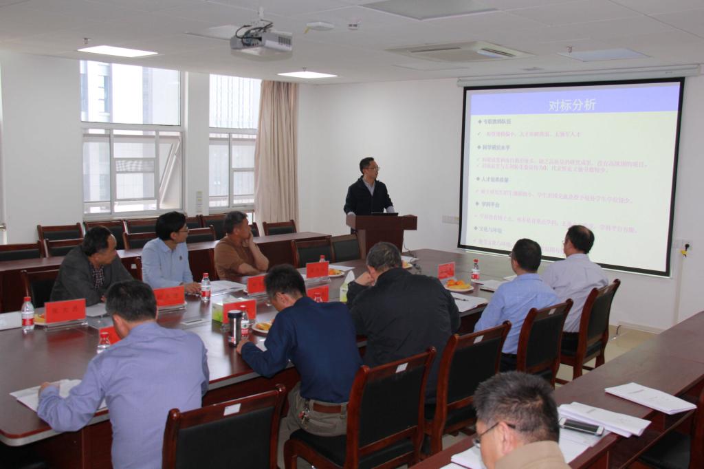 随后,黄刚教授做数学学科对标建设和人才队伍建设规划报告。报告选取国内两所对标学校,从学科方向、人才队伍、在校生质量、学科成人网站 水平、社会服务能力与学科声誉等方面进行系统比较,全面分析我校数学学科建设中的不足,指出学科阶段性重点赶超的目标和措施,为学科建设与发展提供方向。