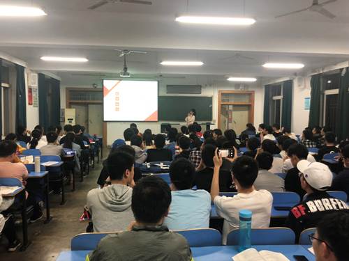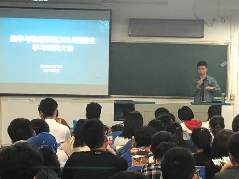 接着发言的是肖睿阳同学,现被保送到中国科学技术大学网络空间安全专业。肖睿阳讲述了自己大学四年以来的学习、竞赛、成人网站 经历,告诫同学们要珍惜大学的时间,朝自己的兴趣奋进,努力终会结出累累硕果。