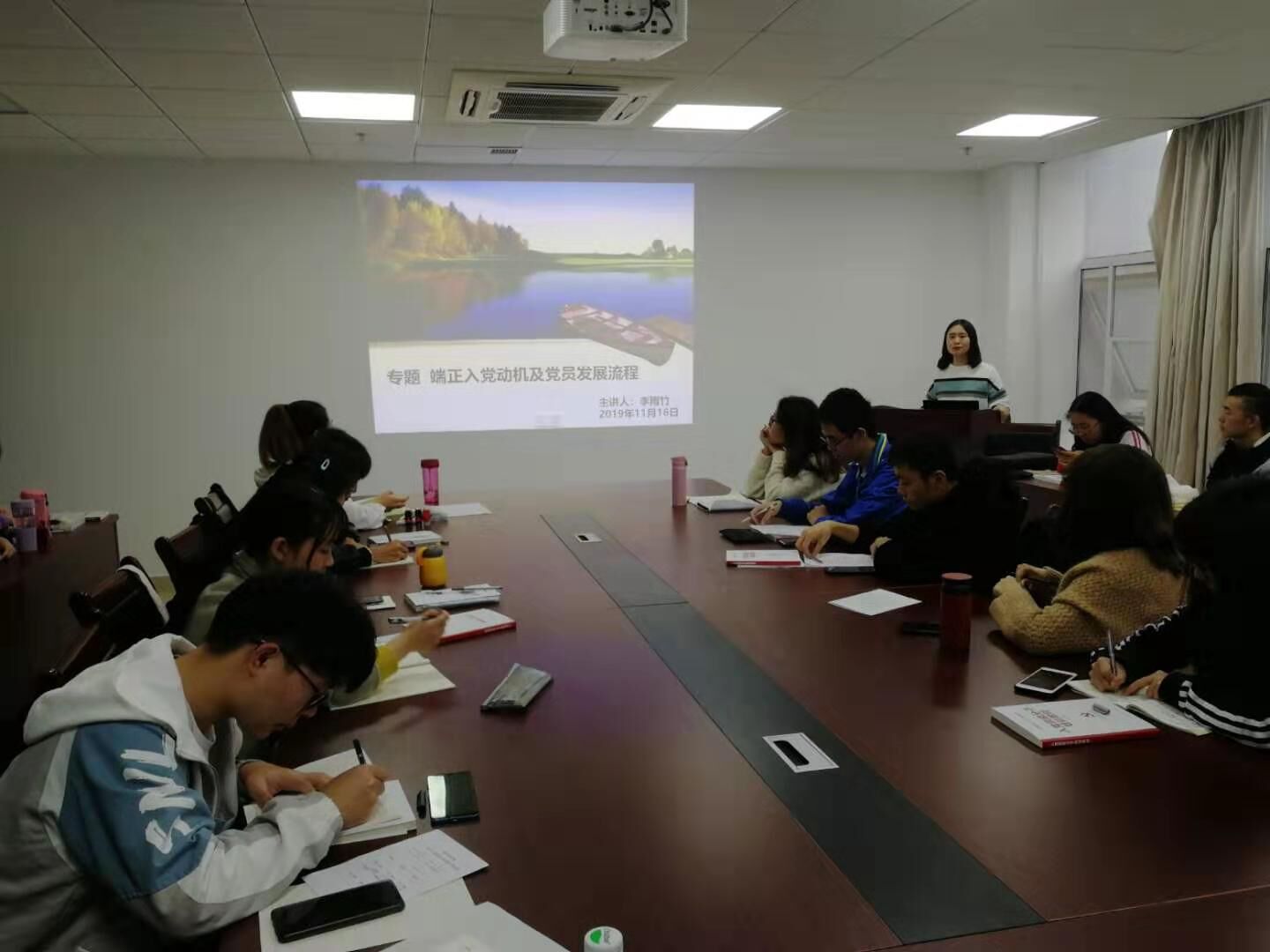 11月16日下午,成人网站 第66期入党积极分子培训班第三讲在东区教学综合楼A1505会议室举行。党委组织部李雨竹老师主讲,主题为端正入党动机及党员发展流程。孙宇涛老师主持。